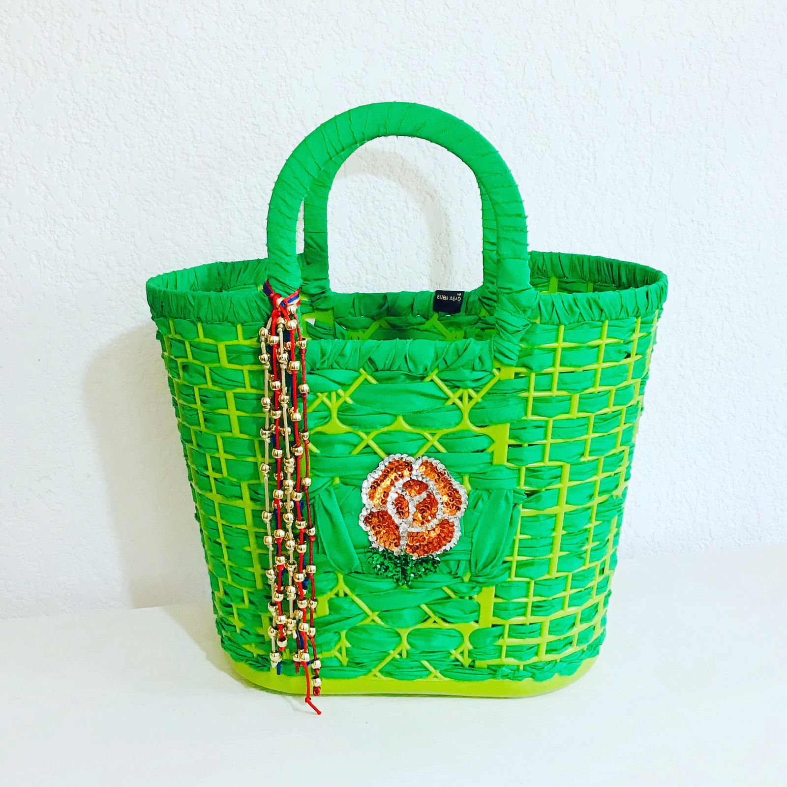 Diferentes bolsas en colores negro, naranja, rojo, rosa mexicano nude y variados diseños y Materiales Palma, malla Plastica, tela plumas, lentejuelas, bordados. Listones, espiguillas, cuentas metálicas elaboradas a mano.